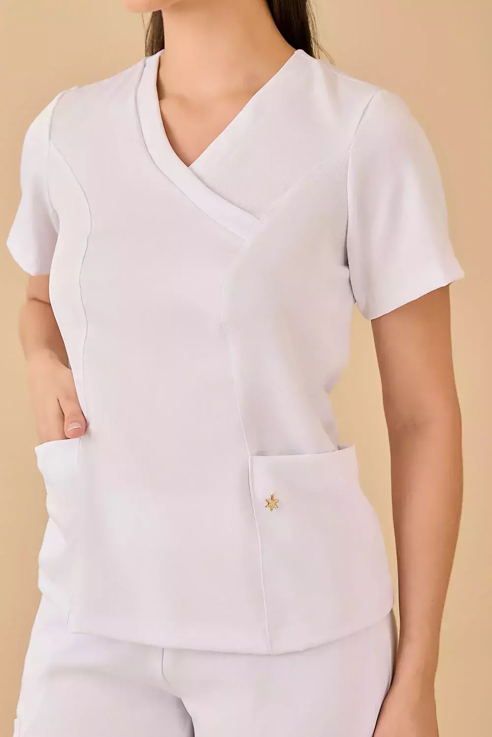 O Scrub feminino Eloa é a escolha perfeita para profissionais que buscam um pijama cirúrgico elegante sem abrir mão de estilo e conforto. Escolha certa pra quem busca um modelo pra sair do plantão e estar linda em qualquer lugar.